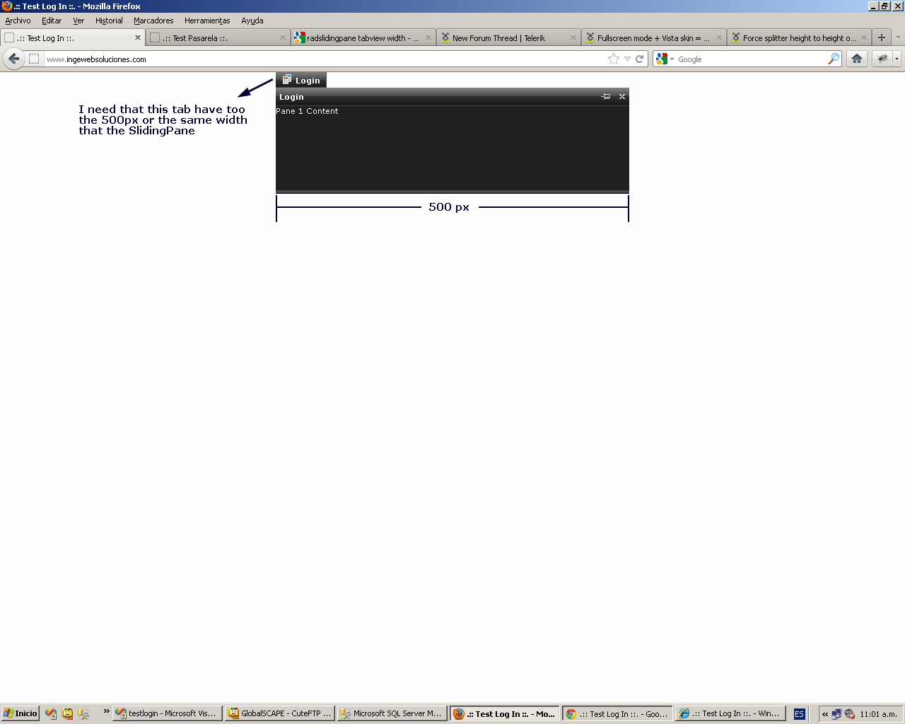 <telerik:RadSlidingPane ID="tabslidelog" Title="<span class='txt11fffN'>Login</span>" IconUrl="~/img/blogs.png" TabView="TextAndImage" runat="server" Width="500px" MaxWidth="500" MinWidth="500" MaxHeight="150" EnableDock="true" EnableResize="false" Overlay="true">