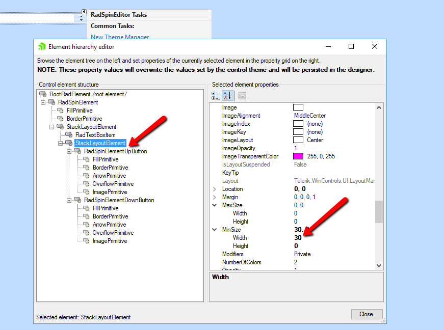 On RadSpinElementUpButton make autosize to "False"
