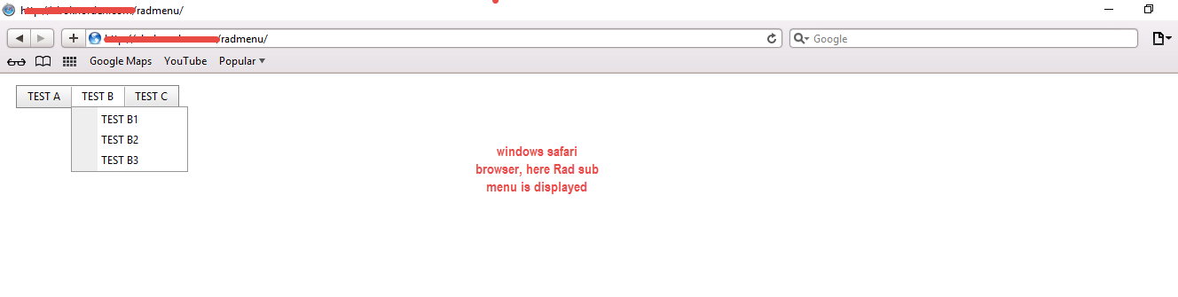 I have created a Sample project with Radmenu alone, where i can able to see the same issue. I have attached the created sample project below. And also i have attached the Images of the output of the Safari browser both in Windows and MAC os. Kindly find my attachment.