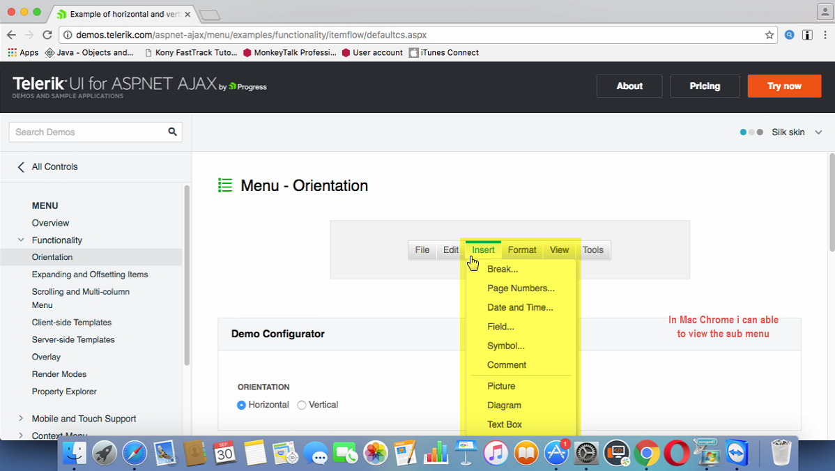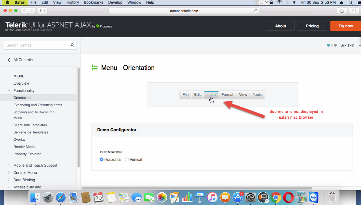 But still i can able to view the issue from the link which you refered to check, http://demos.telerik.com/aspnet-ajax/menu/examples/functionality/rendermodes/defaultcs.aspx in the MAC safari browser. I have attached the screenshot below for your references. Do we have any solution to this problem?
