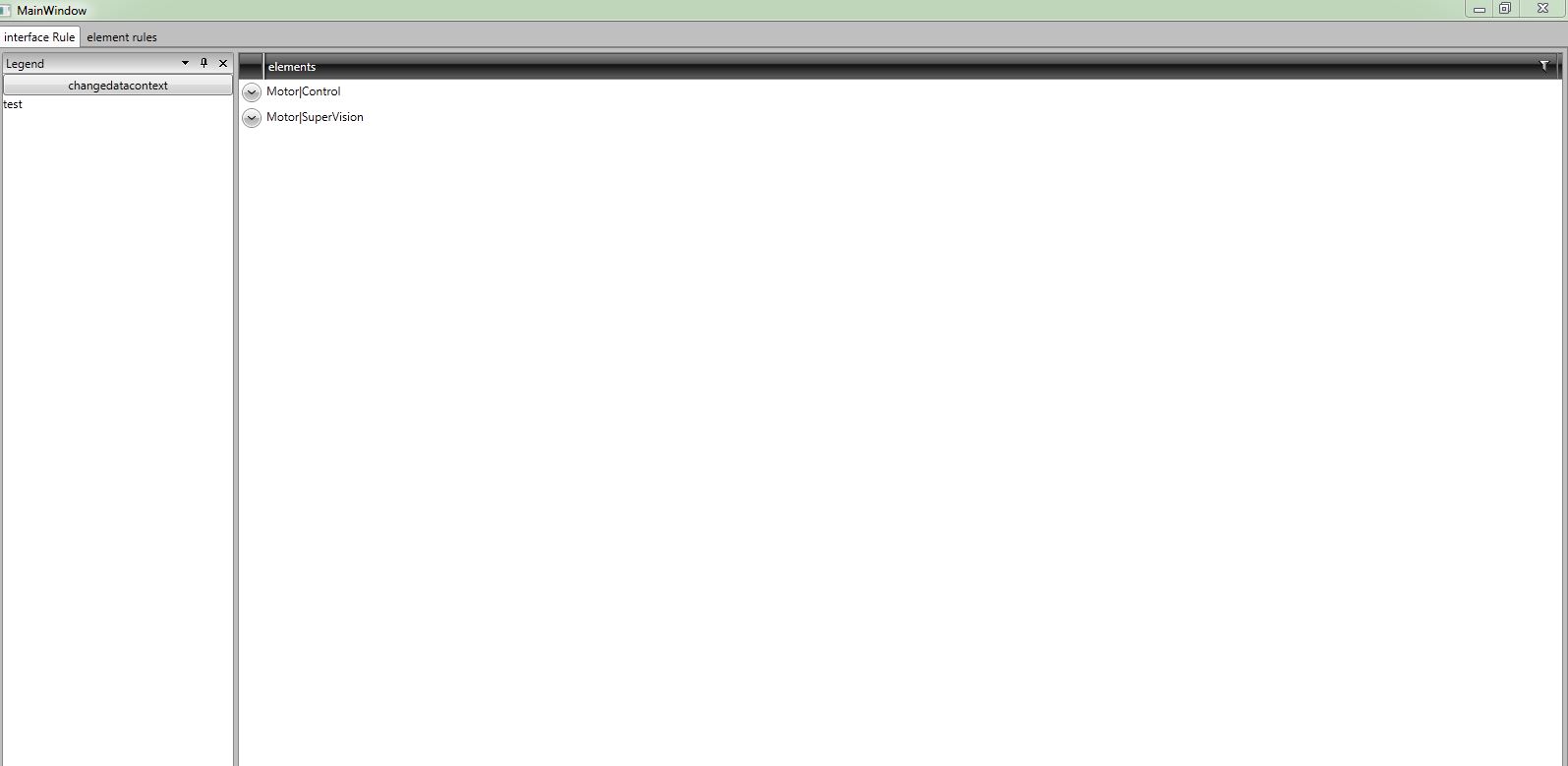 <Window x:Class="TabPanelInstanceValidator.MainWindow" xmlns="http://schemas.microsoft.com/winfx/2006/xaml/presentation" xmlns:x="http://schemas.microsoft.com/winfx/2006/xaml" xmlns:telerik="http://schemas.telerik.com/2008/xaml/presentation" xmlns:tabPanelInstanceValidator="clr-namespace:TabPanelInstanceValidator" Title="MainWindow" Height="350" Width="525"> <telerik:RadTabControl ItemsSource="{Binding}" DisplayMemberPath="header" > <telerik:RadTabControl.ContentTemplate> <DataTemplate> <telerik:RadDocking> <telerik:RadDocking.DocumentHost> <telerik:RadGridView AutoGenerateColumns="False" ShowGroupPanel="False" ItemsSource="{Binding Elements}" > <telerik:RadGridView.Columns> <telerik:GridViewDataColumn DataMemberBinding="{Binding Path}" Width="*" Header="elements"></telerik:GridViewDataColumn> </telerik:RadGridView.Columns> <telerik:RadGridView.RowStyle> <Style TargetType="telerik:GridViewRow"> <Setter Property="Template"> <Setter.Value> <ControlTemplate> <telerik:RadExpander ExpandDirection="Down" Name="check" Header="{Binding Path}"> <GroupBox> <GroupBox.Header> <CheckBox>ShowAll</CheckBox> </GroupBox.Header> <tabPanelInstanceValidator:CustomRadGridView AutoGenerateColumns="False" AssignableColumns="{Binding}" DataContext="{Binding FeedData}" RowIndicatorVisibility="Hidden" > </tabPanelInstanceValidator:CustomRadGridView> </GroupBox> </telerik:RadExpander> </ControlTemplate> </Setter.Value> </Setter> </Style> </telerik:RadGridView.RowStyle> </telerik:RadGridView> </telerik:RadDocking.DocumentHost> <telerik:RadSplitContainer InitialPosition="DockedLeft"> <telerik:RadPaneGroup> <telerik:RadPane IsPinned="False" CanFloat="False" Header="Legend"> <StackPanel> <Button Click="ButtonBase_OnClick">changedatacontext</Button> <TextBlock>test</TextBlock> </StackPanel> </telerik:RadPane> </telerik:RadPaneGroup> </telerik:RadSplitContainer> </telerik:RadDocking> </DataTemplate> </telerik:RadTabControl.ContentTemplate> </telerik:RadTabControl> </Window> the code behind for same is -using System; using System.Collections.Generic; using System.Windows; using System.Windows.Input; namespace TabPanelInstanceValidator { /// <summary> /// Interaction logic for MainWindow.xaml /// </summary> public partial class MainWindow : Window { public MainWindow() { InitializeComponent(); List<Rules> abc = new List<Rules>(); abc.Add(new Rules("interface Rule") { Elements = new List<ElementRule>() { new ElementRule("Motor|Control") { FeedData = new List<RuleCollect>() { new RuleCollect() { element = "sample", rules = new List<Rule>() { new Rule() { name = "RuleTest", status = "Required" }, new Rule() { name = "RuleTest2", status = "Optional" } } }, new RuleCollect() { element = "sample1", rules = new List<Rule>() { new Rule() { name = "RuleTest", status = "Required" }, new Rule() { name = "RuleTest2", status = "Required" } } }, }} ,new ElementRule("Motor|SuperVision") { FeedData = new List<RuleCollect>() { new RuleCollect() { element = "sample", rules = new List<Rule>() { new Rule() { name = "RuleTest", status = "Required" }, new Rule() { name = "RuleTest2", status = "Optional" } } }, new RuleCollect() { element = "sample1", rules = new List<Rule>() { new Rule() { name = "RuleTest", status = "Required" } } }, }}} }); abc.Add(new Rules("element rules") { Elements = new List<ElementRule>() { new ElementRule("Motor|sbdk1") { FeedData = new List<RuleCollect>() { new RuleCollect() { element = "sample", rules = new List<Rule>() { new Rule() { name = "RuleTest", status = "Required" }, new Rule() { name = "RuleTest2", status = "Optional" } } }, new RuleCollect() { element = "sample1", rules = new List<Rule>() { new Rule() { name = "RuleTest", status = "Required" }, new Rule() { name = "RuleTest2", status = "Required" } } }, }}, new ElementRule("Motor|sbdk2") { FeedData = new List<RuleCollect>() { new RuleCollect() { element = "sample", rules = new List<Rule>() { new Rule() { name = "RuleTest", status = "Required" }, new Rule() { name = "RuleTest2", status = "Optional" }, new Rule() { name = "RuleTest3", status = "Prohibited" } } }, new RuleCollect() { element = "sample1", rules = new List<Rule>() { new Rule() { name = "RuleTest", status = "Required" }, new Rule() { name = "RuleTest2", status = "Required" }, new Rule() { name = "RuleTest3", status = "Prohibited" } } }, } } } }); this.DataContext = abc; } private void UIElement_OnMouseEnter(object sender, MouseEventArgs e) { throw new NotImplementedException(); } private void ButtonBase_OnClick(object sender, RoutedEventArgs e) { List<Rules> abc = new List<Rules>(); abc.Add(new Rules("interface Rule") { Elements = new List<ElementRule>() { new ElementRule("Motor|Control") { FeedData = new List<RuleCollect>() { new RuleCollect() { element = "sample", rules = new List<Rule>() { new Rule() { name = "RuleTest", status = "Required" }, new Rule() { name = "RuleTest2", status = "Optional" } } }, new RuleCollect() { element = "sample1", rules = new List<Rule>() { new Rule() { name = "RuleTest", status = "Required" }, new Rule() { name = "RuleTest2", status = "Required" } } }, }} ,new ElementRule("Motor|SuperVision") { FeedData = new List<RuleCollect>() { new RuleCollect() { element = "sample", rules = new List<Rule>() { new Rule() { name = "RuleTest", status = "Required" }, new Rule() { name = "RuleTest2", status = "Optional" } } }, new RuleCollect() { element = "sample1", rules = new List<Rule>() { new Rule() { name = "RuleTest", status = "Required" } } }, }}} }); abc.Add(new Rules("testrule") { Elements = new List<ElementRule>() { new ElementRule("check")} }); this.DataContext = abc; // aa.SelectedIndex = 1; } } }