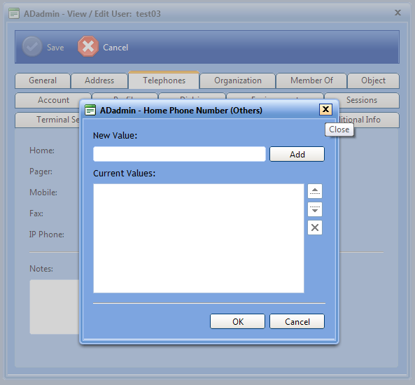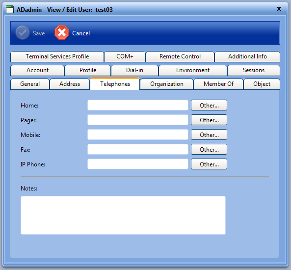 <telerik:RadTabStrip ID="RadTabStrip1" runat="server"Align="Justify"AutoPostBack="true"CausesValidation="false"MultiPageID="RadMultiPage1"OnClientTabSelecting="NeedToShowValidationSummary"ReorderTabsOnSelect="true"SelectedIndex="0"ShowBaseLine="false"ValidationGroup="valGroup"Width="100%"> <Tabs> <telerik:RadTab Text="General" /> <telerik:RadTab Text="Address" /> <telerik:RadTab Text="Telephones" /> <telerik:RadTab Text="Organization" /> <telerik:RadTab Text="Member Of" /> <telerik:RadTab Text="Object" IsBreak="true" /> <telerik:RadTab Text="Account" /> <telerik:RadTab Text="Profile" /> <telerik:RadTab Text="Dial-in" /> <telerik:RadTab Text="Environment" /> <telerik:RadTab Text="Sessions" IsBreak="true" /> <telerik:RadTab Text="Terminal Services Profile" /> <telerik:RadTab Text="COM+" /> <telerik:RadTab Text="Remote Control" /> <telerik:RadTab Text="Additional Info" /> </Tabs> </telerik:RadTabStrip>