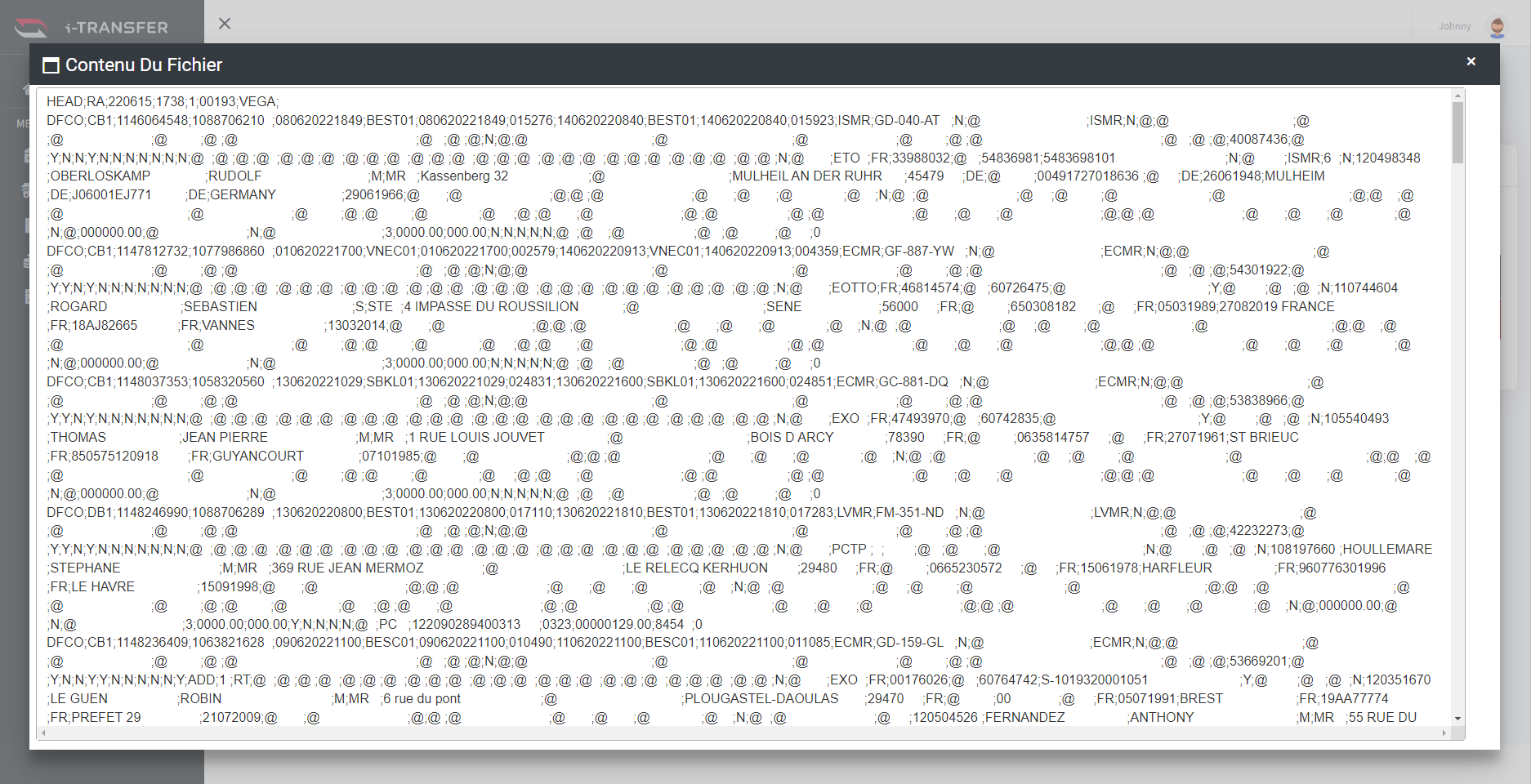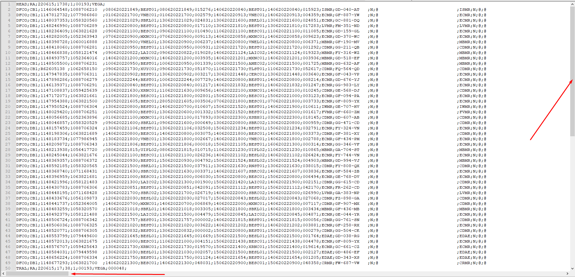 The image DatFile.png contains a screenshot of how my file looks like, with vertical and horizontal scrollbars to keep the text formatted in a readable way and only wrapping the text when the line is finished. If the line is too long, an horizontal scroll allows you to navigate and see the rest of the line without actually wrapping it to a new line and making it very hard to read.