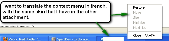 First, when I do right-click on the title bar, I see a context menu in English language. How can I do to see it in French ?