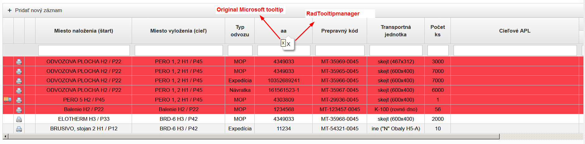 First I have to set tooltip value through declaration of the column, then on column hover both Microsoft original tooltip and RadTooltipManager are shown. If I leave Radgrid column tooltip value empty in column declaration section, then I couldn't set value from client side through tooltip.set_value('') method. Result is that when I hover mouse over column header nothing is shown.