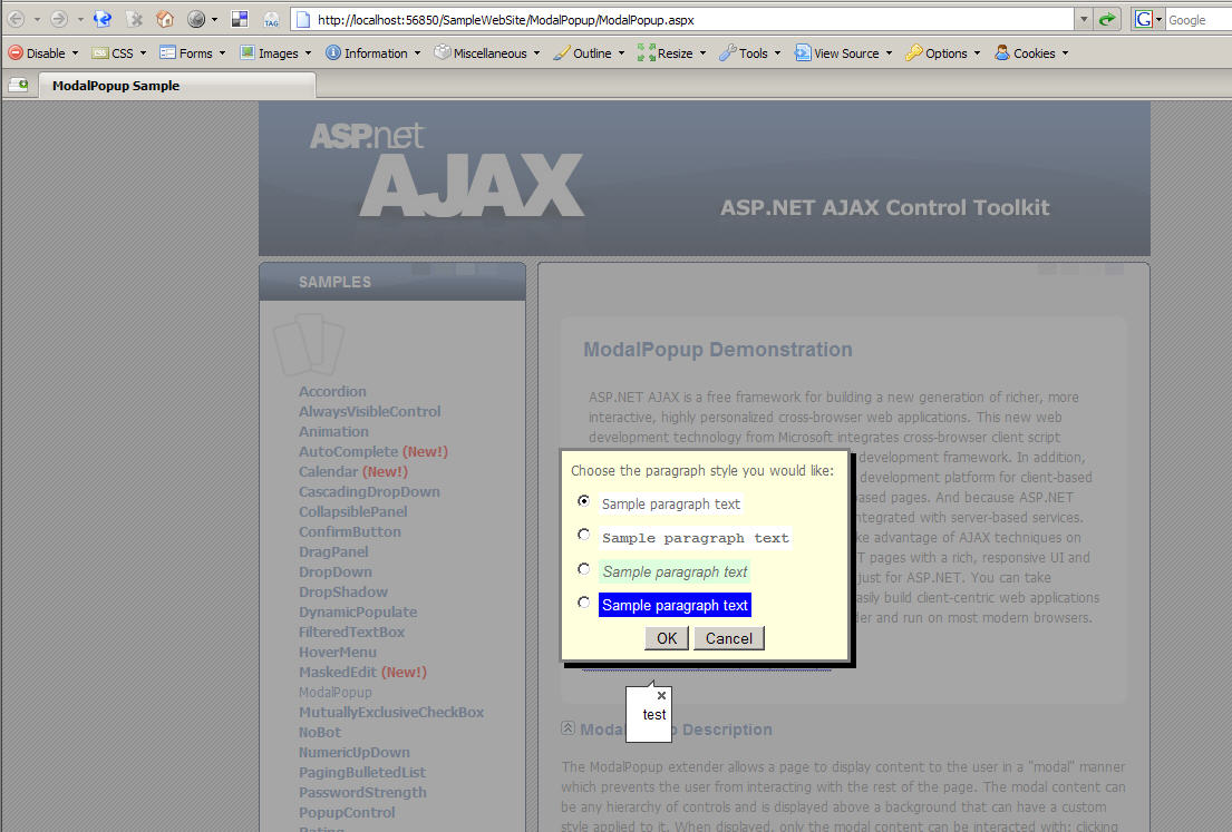 Has anyone had any success with displaying a RadToolTip on the ModalPopupExtender of the AjaxControlToolkit?