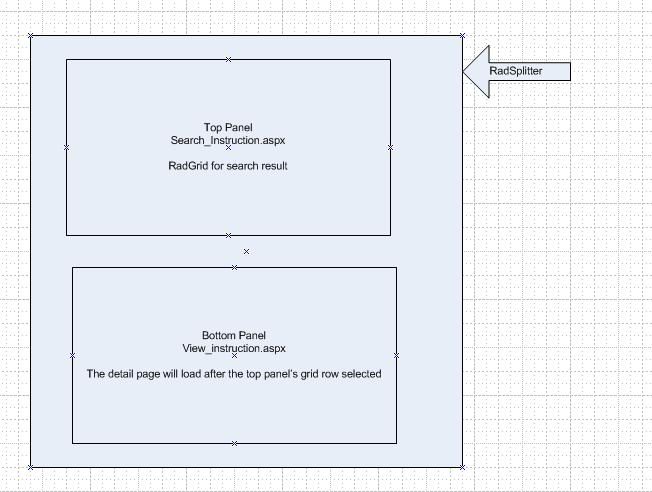 I have a asp.net application and i used the radsplitter to separate top RadPane and bottom RadPane. the top panel will show up a separate web page with a grid inside. when any one of the row selected in the top pane and the client side will ask the bottom pane to show up the detail of the record.
