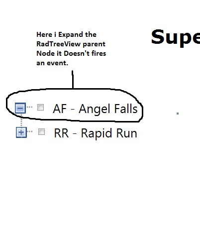 in my project i have a Radtree View for Select Different operations. it works fine but i have a problem in Radtreeview, when the page Loads Radtreeview Displays in the Following attachment-1, when i am expand the Tree parent node it doesn't fires any event. But it fires an event when click on the Radtree Node successfully,