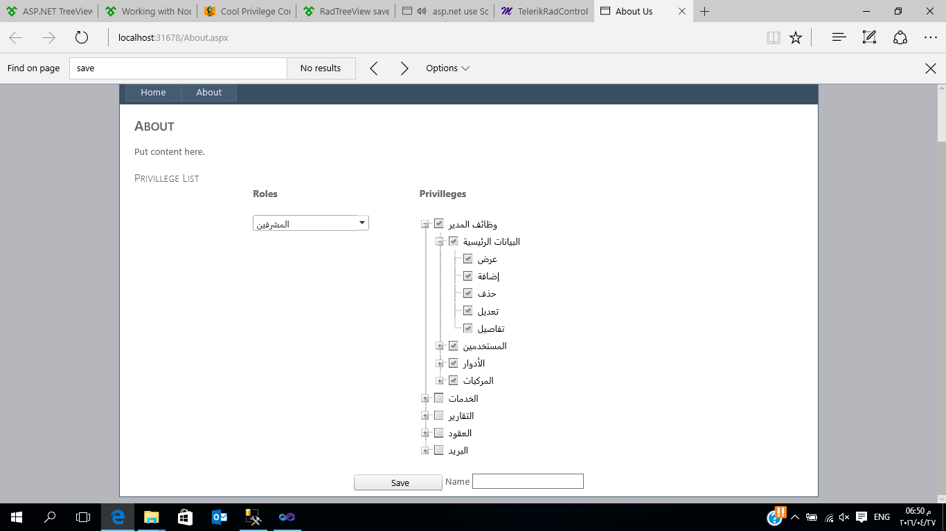 I have project to select from radtreeview and save in database, but the save button not working to save in sql server