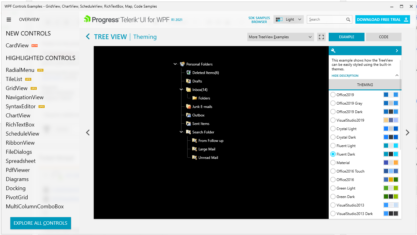 I tried the dark Fluent style for RadTreeView but it didn't work well.