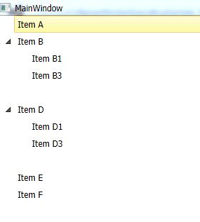 <Grid.Resources> <Style TargetType="telerik:RadTreeViewItem"> <Setter Property="ItemsPanel"> <Setter.Value> <ItemsPanelTemplate> <StackPanel /> </ItemsPanelTemplate> </Setter.Value> </Setter> </Style> </Grid.Resources> <telerik:RadTreeView IsEditable="True"> <telerik:RadTreeView.ItemsPanel> <ItemsPanelTemplate> <StackPanel /> </ItemsPanelTemplate> </telerik:RadTreeView.ItemsPanel> <telerik:RadTreeViewItem Header="Item A" /> <telerik:RadTreeViewItem Header="Item B" /> <telerik:RadTreeViewItem Header="Item C" Visibility="Collapsed"/> <telerik:RadTreeViewItem Header="Item D" > <telerik:RadTreeViewItem Header="Item D1" /> <telerik:RadTreeViewItem Header="Item D2" Visibility="Collapsed"/> <telerik:RadTreeViewItem Header="Item D3" /> </telerik:RadTreeViewItem> <telerik:RadTreeViewItem Header="Item E" /> <telerik:RadTreeViewItem Header="Item F" /> </telerik:RadTreeView>Please note that this setting breaks the virtualization feature of RadTreeView. But for small xaml-defined RadTreeViews where you don't usually need virtualization, this works fine. Regards,