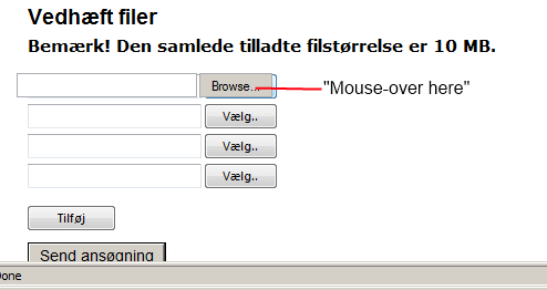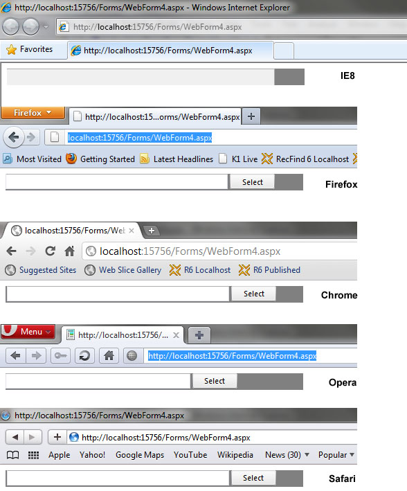 Here is the page: Notice I added BackColor="gray" and that color shows up where I would expect the browse button to be. It still works as long as I click on the text box input and that brings up the file selection dialog.