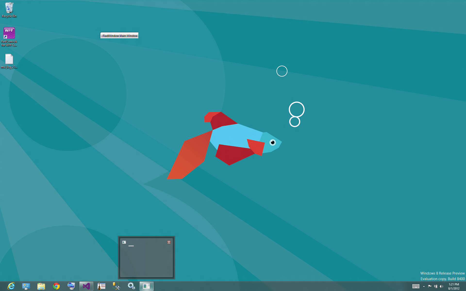 When you minimize the MainWindow of the sample you sent (where it only is shown in the TaskBar) and then hover over the TaskBar icon, you will see a minimized picture in the thumbnail (which is unacceptable). If you then hover over the thumbnail itself, you will only see a nib on the screen (which is doubly unacceptable). At this point, I've described the problem in detail, sent before and after screenshots, run the code you've sent and confirmed that your app has the same issue as my app. I don't know what else I can do but forego the use of the RadWindow because (for anyone else that reads this post) when you minimize the RadWindow used as the MainWindow, hovering over its thumbnail from the TaskBar will display NOT the screen you expect, but a small nib (as shown in my attached images).