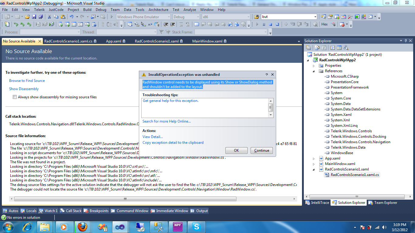 navigation:RadWindowInteropHelper.ShowInTaskbar="True" navigation:RadWindowInteropHelper.Icon="/MyApp;component/App.ico" navigation:RadWindowInteropHelper.Title="My App"1) add the project a reference to: