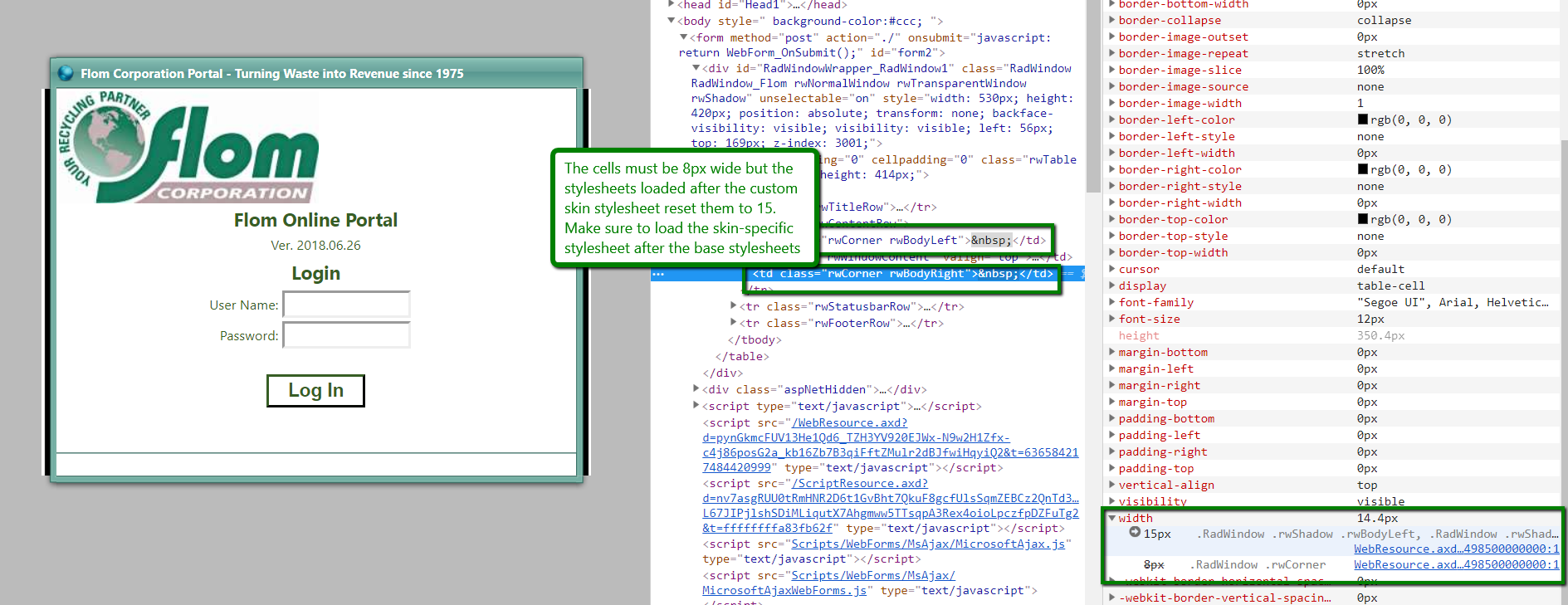 The window on https://flomportal.azurewebsites.net/ used classic skin with classic render mode. Can you please set EnableShadow=false which will remove the shadows which make the side borders bigger?