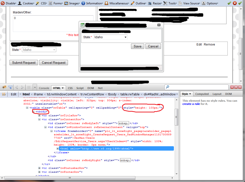 If i edit the html in Firefox and add the style to the tbody tag, the window height sizes perfectly, but without the correct style attribute - you can see the extra white space in the screenshot.