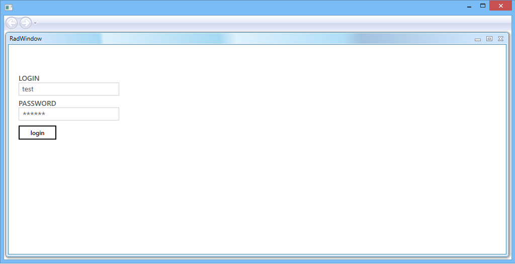 <telerik:RadWindow<br> x:Class="SomeProject.SomeFOlder.LoginWindow"<br> xmlns="http://schemas.microsoft.com/winfx/2006/xaml/presentation"<br> xmlns:x="http://schemas.microsoft.com/winfx/2006/xaml"<br> xmlns:telerik="http://schemas.telerik.com/2008/xaml/presentation"<br> telerik:StyleManager.Theme="Vista"><br> <Grid> ... </Grid><br></telerik:RadWindow>When I sturtup my project, I have got the next (see attach):