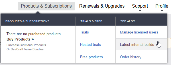 On other hand you can download the latest internal builds from your account - click the Products and Descriptions in menu on the top and then Latest Internal Builds (check the screenshot).