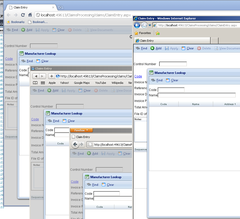 <telerik:RadWindowManager runat="server" ID="rwmManager" VisibleStatusbar="False" EnableShadow="True" ShowContentDuringLoad="false" Skin="Office2007" Modal="True" Behaviors="Move" KeepInScreenBounds="True" ReloadOnShow="True" VisibleOnPageLoad="true"> <Windows> <telerik:RadWindow runat="server" ID="rwLetter" Width="500" Height="300"> </telerik:RadWindow> <telerik:RadWindow runat="server" ID="rwLookup" Width="1010" Height="600"> </telerik:RadWindow> <telerik:RadWindow runat="server" ID="rwViewDocuments" Width="900" Height="400"> </telerik:RadWindow> <telerik:RadWindow runat="server" ID="rvViewDuplicates" Width="700" Height="400"> </telerik:RadWindow> <telerik:RadWindow runat="server" ID="rwGridEntry" Title="Add/Modifiy Detail Line" VisibleStatusbar="true" Width="1000" Height="650" ShowContentDuringLoad="false"> <ContentTemplate> <div id="destination" runat="server" /> </ContentTemplate> </telerik:RadWindow> </Windows> </telerik:RadWindowManager>I understand that this is not a real solution and we will fix the problem or at least provide more information on the matter next week.