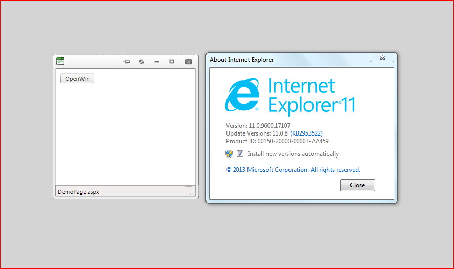<script type="text/javascript"> function OnClientShow(sender, args) { if ($telerik.isIE) sender.get_contentFrame().style.position = "relative"; } </script> <telerik:RadWindow ID="w" runat="server" NavigateUrl="WebForm1.aspx" Modal="true" VisibleOnPageLoad="true" OnClientShow="OnClientShow"> </telerik:RadWindow>This seems to work fine on my side but it is possible that you will face some problems in future and thus we recommend once again to remove the global style from the HTML element instead.