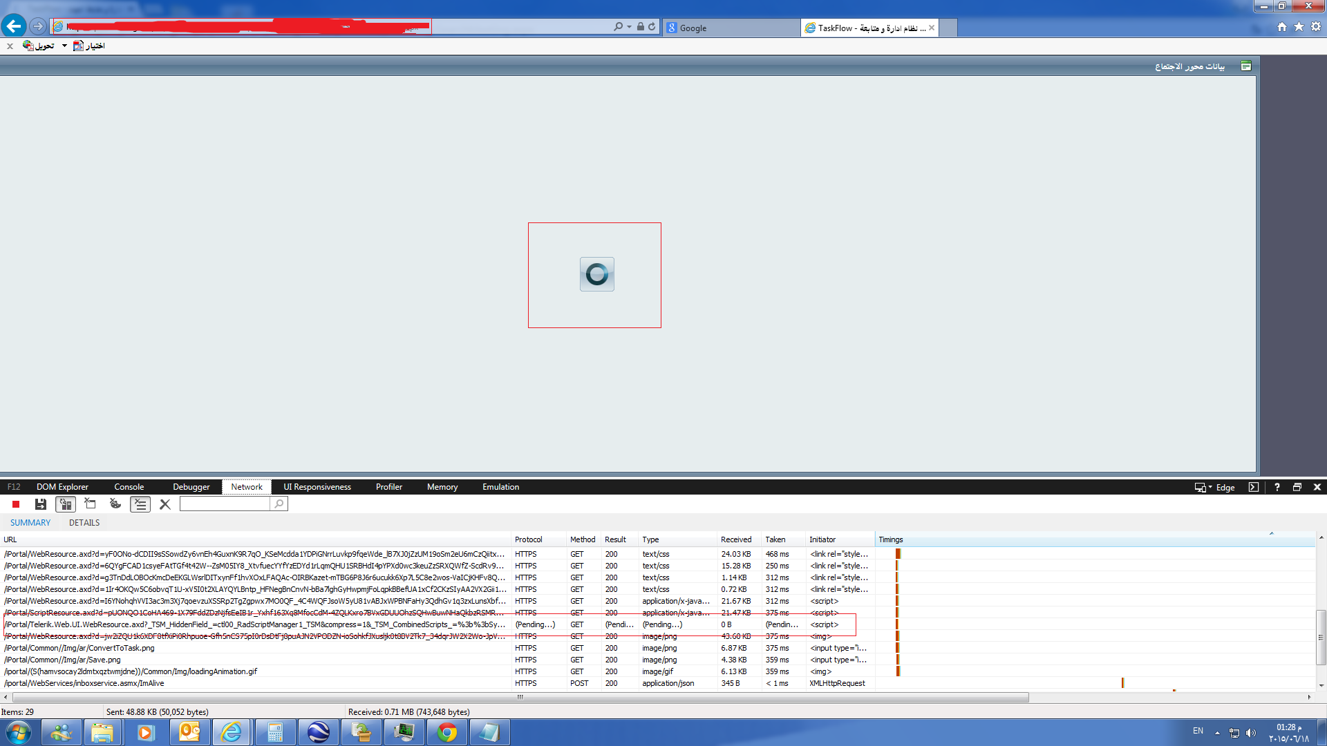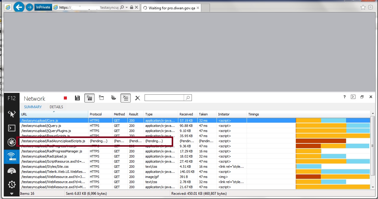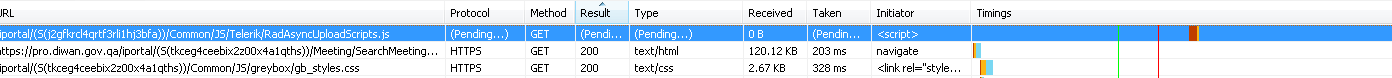 In a very strange behavior, Only two Radwindows takes an infinite time to load (I am heavily using RadWindows in my application) , on client machine I always refresh the browser and clear the cache in trials to open the window, after monitoring the network traffic I found the window stuck loading the WebResource