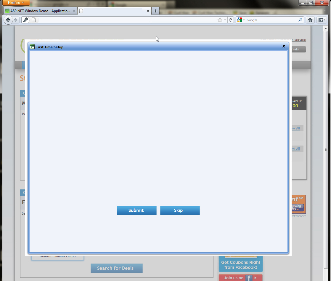 <telerik:RadWindowManager ID="wndManager" runat="server" Skin="Outlook"> <Windows> <telerik:RadWindow ID="wndSetUp" runat="server" BorderStyle="None" EnableShadow="True" Height="730px" KeepInScreenBounds="True" Modal="True" NavigateUrl="InitialSetUp.aspx" Overlay="True" ShowContentDuringLoad="False" Style="display: none;" Title=" First Time Setup" Visible="False" VisibleStatusbar="False" Width="900px" VisibleTitlebar="True" Behavior="Close, Move" Behaviors="Close, Move" Skin="Outlook"> </telerik:RadWindow> </Windows></telerik:RadWindowManager>