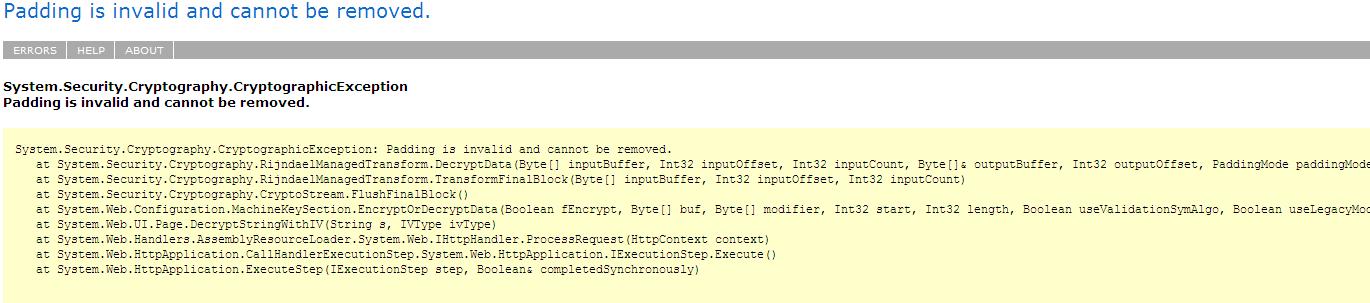 It's Give me Cryptography Error. I think it's a Viewstate Cryptography Error.