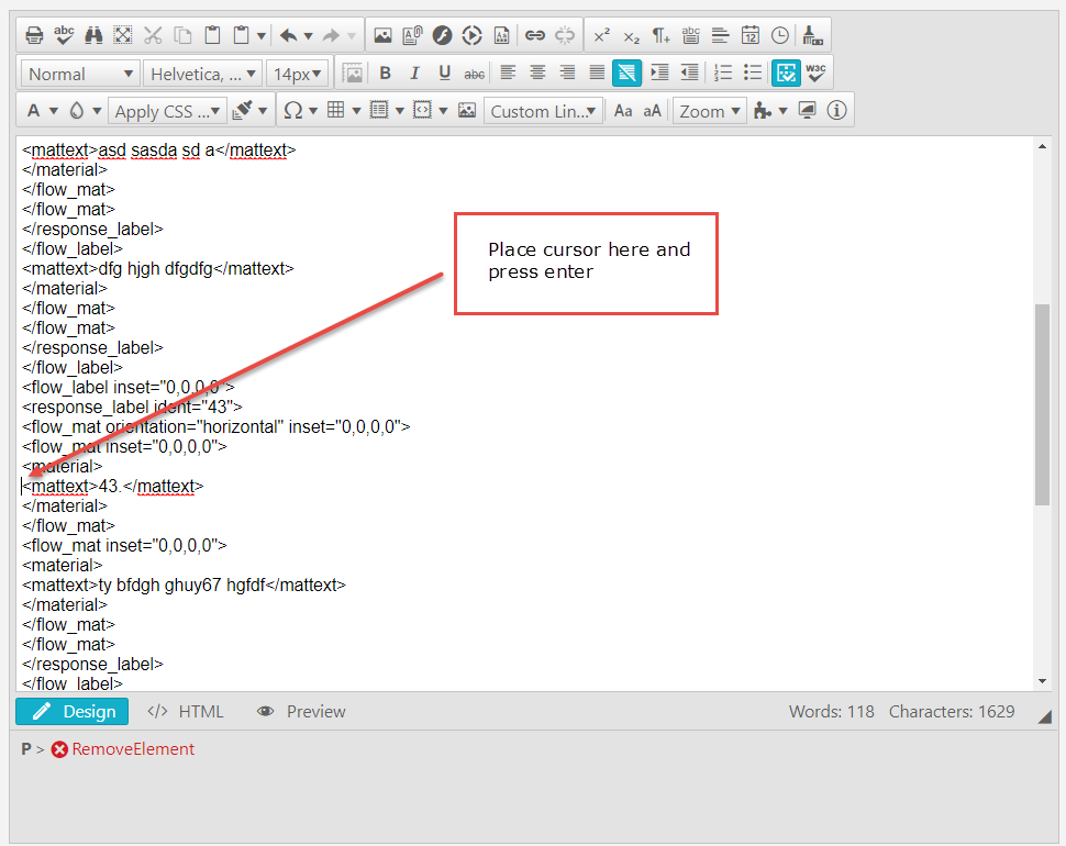 - Switch to HTML view