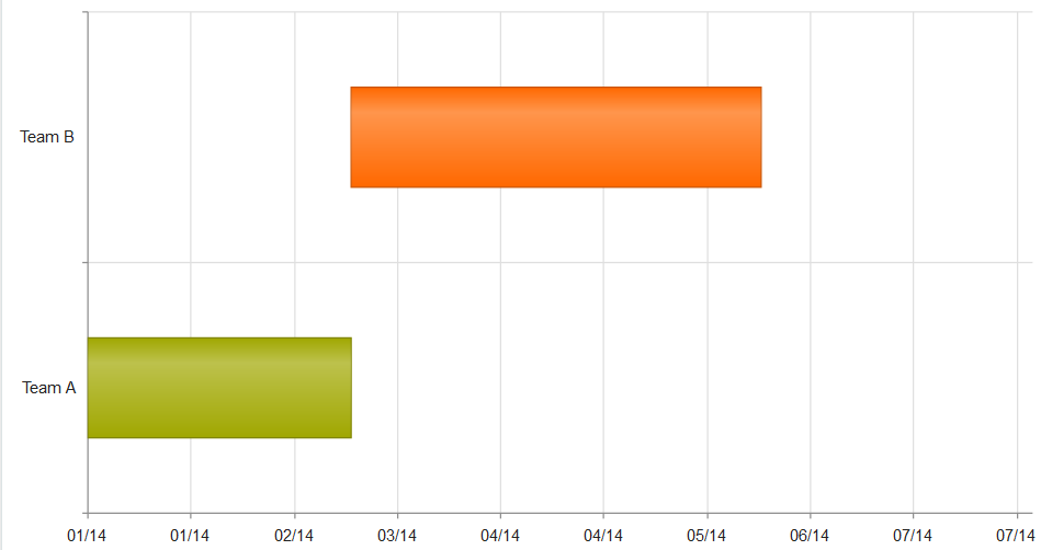 I am trying to modify this to show a range across months instead of a single day. Below is the modified code where I am attempting to show one range from 01/14 - 03/14 and the other range from 03/14 - 06/14. I can get the vertical axis to show dates in the format I want (MM/yy), but I'm getting months showing up twice, so I'm hopefully assuming I just have things configured wrong. I would like to have a vertical line for each month; 01/14, 02/14, 03/14, etc. Can anyone point out what I should change or if the desired result is not really possible using this control?