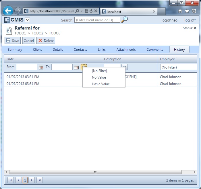 <telerik:RadGrid ID="radGridHistory" AllowCustomPaging="True" AllowFilteringByColumn="True" AllowPaging="True" AllowSorting="True" AutoGenerateColumns="False" EnableHeaderContextMenu="true" EnableLinqExpressions="False" GridLines="Horizontal" GroupingEnabled="false" Visible="false" OnItemDataBound="radGridHistory_ItemDataBound" OnInit="radGridHistory_Init" OnNeedDataSource="radGridHistory_NeedDataSource" runat="server"> <GroupingSettings CaseSensitive="false" /> <MasterTableView DataKeyNames="ID" AllowFilteringByColumn="true" AllowCustomSorting="true" NoMasterRecordsText="No History records to display"> <Columns> <telerik:GridDateTimeColumn DataField="EventDate" DataFormatString="{0:MM/dd/yyyy hh:mm tt}" EnableRangeFiltering="true" EnableTimeIndependentFiltering="false" HeaderText="Date" PickerType="DatePicker" SortExpression="EventDate" UniqueName="EventDate"> </telerik:GridDateTimeColumn> </Columns> <PagerStyle AlwaysVisible="True" /> </MasterTableView> <ClientSettings> <Scrolling AllowScroll="true" UseStaticHeaders="true" /> </ClientSettings> <PagerStyle Mode="NextPrevAndNumeric" AlwaysVisible="true" /> <FilterMenu EnableImageSprites="false" /></telerik:RadGrid>The filter popup though is missing the "NoFilter", "Between" and "NotBetween" options as shown in the attached jpg. What am I missing here? I am running Telerik ASP.NET AJAX version 2012.3.1205.40.