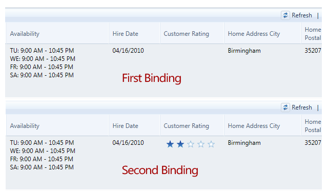 If items are loaded from the database, then they appear correctly, however if I update the previously empty data source with a new item, the rating column will display hyperlinks for 1,2,3,4,5, rather than the star images that are usually present. Please see the attached screenshots for more details.