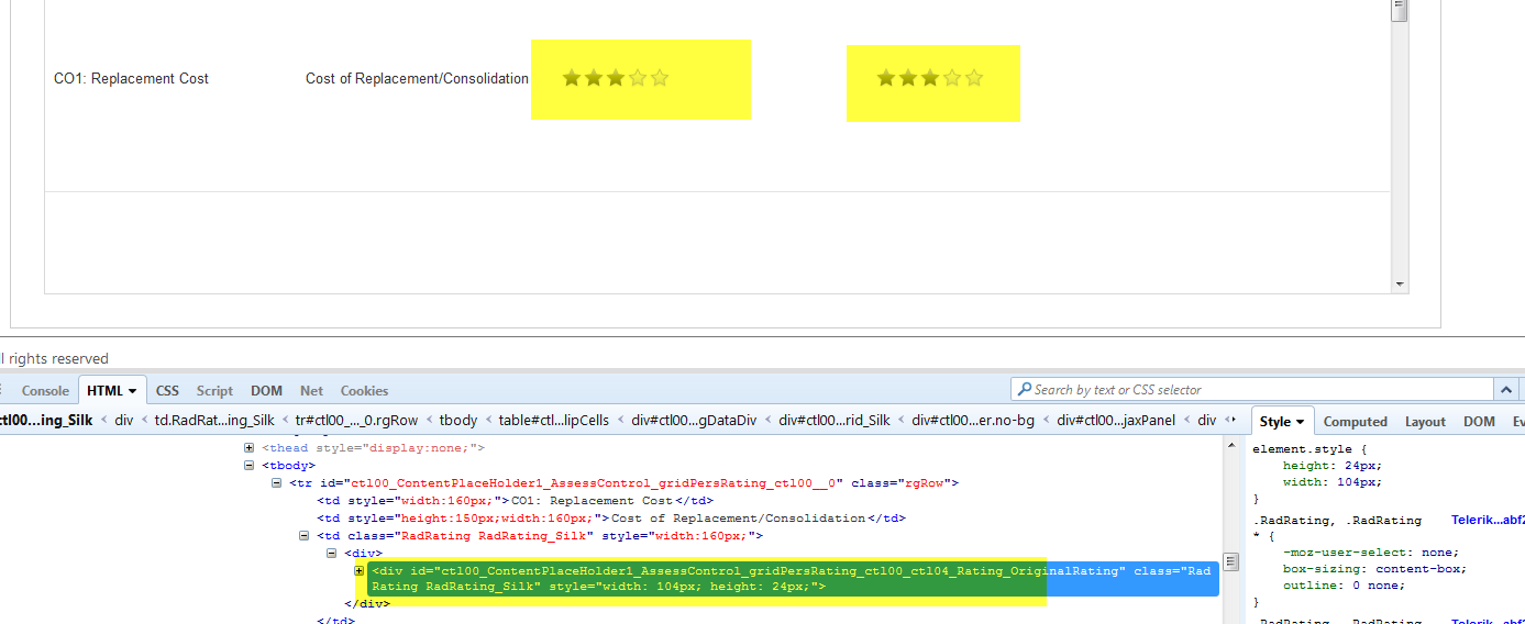 i tried to change the style to keep all stars in one line.horizontally. not sure how can i fix it. please find the image. and i am looking for expactedresult in second image.