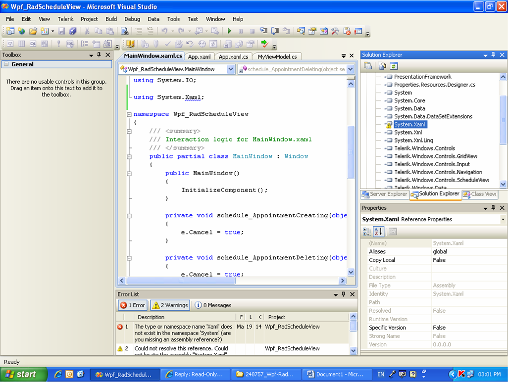 The type or namespace name 'Xaml' does not exist in the namespace 'System' (are you missing an assembly reference?)