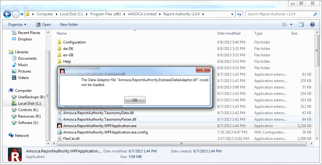 I have copied Amosca.ReportAuthority.EssbaseDataAdaptor.dll into the installation folder.
