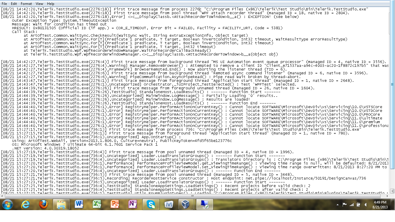 I have tried installing the test studio from scratch. The problem still exists. I have attched the log.