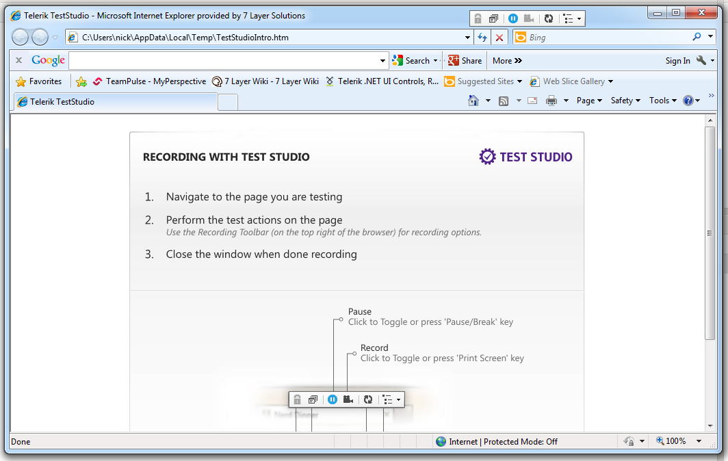 I installed Team Studio yesterday and was able, then, to record tests in Chrome. Now, every time I click on the icon to start recording a test, it takes me into Internet Explorer, even though this is not my default browser - as it evident from the fact that the first message that comes up, when launching the recorder, is the one asking if I want to make IE my default browser.