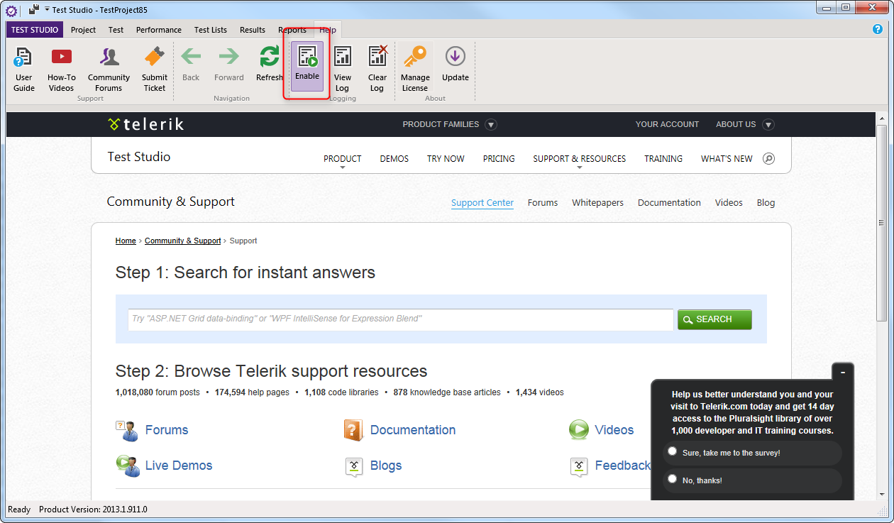 3. Please confirm you have installed Test Studio Chrome extension.. You can find the extension by entering chrome://extensions and press Enter.