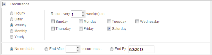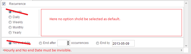 2."Hourly" and "No end date" option must be hide.