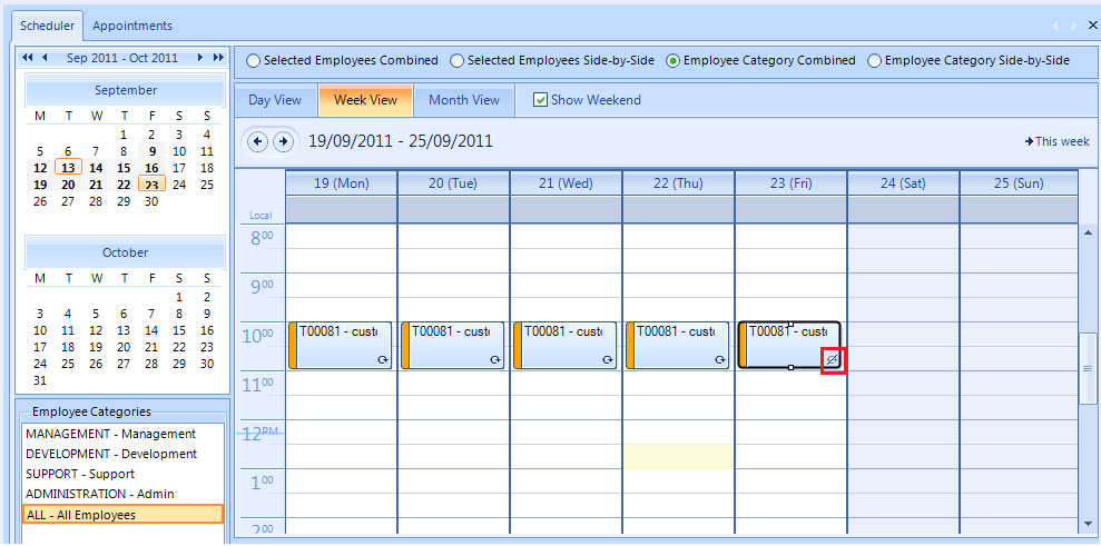 2. I want the following scenario. I would like to create a recurring appointment (say each week on Mondays and Thursdays at 6 p.m. I would like to go to the gym). I create a recurring appointment which generates a number of occurrences in the scheduler view. Then I want to remove a single occurrence for the next week for Thursday (I have different plans for next Thursday). I click on that occurrence in the scheduler. After that I try to delete this occurrence. The view shows me that it is deleted, however when I recheck DB and then reopen scheduler nothing changes. However an exception in DB is created.