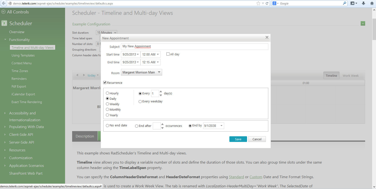 I Created a new recurring appointment daily type with specify endDate(09/01/2038)