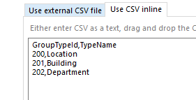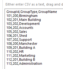 The actual report will be getting the data using Object Data Source methods, I've created the CSV objects to represent what they look like. The GroupHierarchy and GroupType CSV objects were created for this example, so these can be changed if necessary.