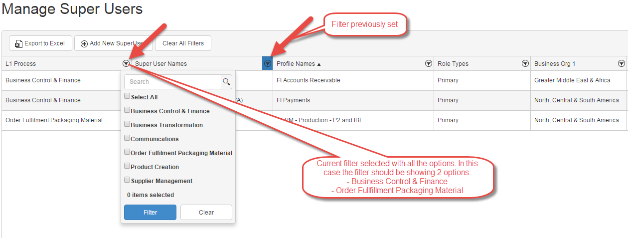 When filter multi checkboxes are used, they are populated only once, when the respective filtering menu is opened for the first time. This ensures good performance and avoids repetitive and unnecessary HTTP requests. By design, the checkboxes's data is refreshed automatically in the following cases: