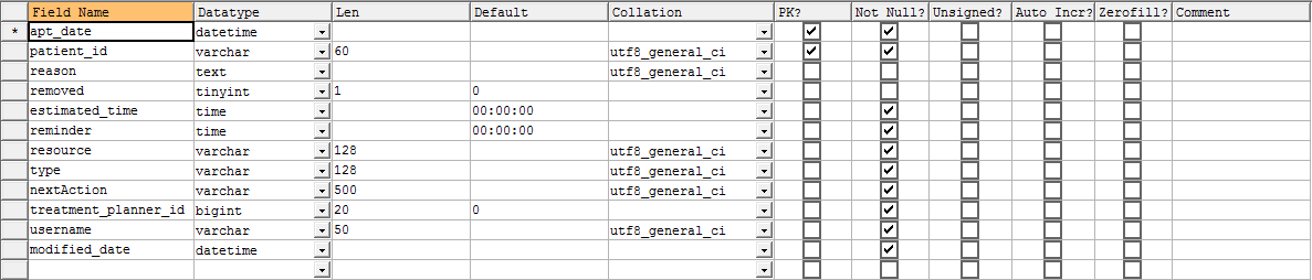 You can refer to our Setting Appointment and Resource relations help article which is quite useful when you have only two tables for setting up data in scheduler. Please have a look at the attached sample project which demonstrates how to bind RadScheduler to a simpler data structure with two tables only. The back up file for the sample data base is included as well.