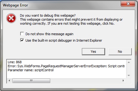 Parameter name: scriptControl