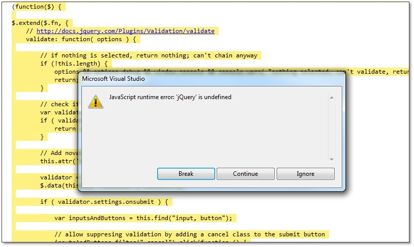 <script type="text/javascript" src="@Url.Content("../../Scripts/jquery-1.9.1.js")"></script> <script type="text/javascript" src="@Url.Content("../../Scripts/jquery-1.9.1.min.js")"></script> <script type="text/javascript" src="@Url.Content("~/Scripts/jquery.validate.js")" <script type="text/javascript" src="@Url.Content("~/Scripts/jquery.validate.unobtrusive.js")" <script type="text/javascript" src="@Url.Content("~/Scripts/jquery.validate.unobtrusive.min.js")" <script type="text/jscript" src="@Url.Content("~/Scripts/kendo/2013.2.918/jquery.min.js")"></script><script type="text/jscript" src="@Url.Content("~/Scripts/kendo/2013.2.918/kendo.all.min.js")"></script><script type="text/jscript" src="@Url.Content("~/Scripts/kendo/2013.2.918/kendo.aspnetmvc.min.js")"></script><script type="text/jscript" src="@Url.Content("~/Scripts/kendo.modernizr.custom.js")"></script>The .cshtml page has the following for one of the