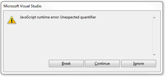<script type="text/javascript" src="@Url.Content("../../Scripts/jquery-1.9.1.js")"></script> <script type="text/javascript" src="@Url.Content("../../Scripts/jquery-1.9.1.min.js")"></script>The error from the kendo.aspnetmvc JavaScript file will be thrown because "(?i)" is not valid for a JavaScript regular expression. The "i" flag needs to be set which currently cannot be done with the RegularExpression attribute. If this is necessary in your scenario then I can suggest to implement a custom attribute that sets flag. Overriding the built-in rule(mvcregex) is another option.