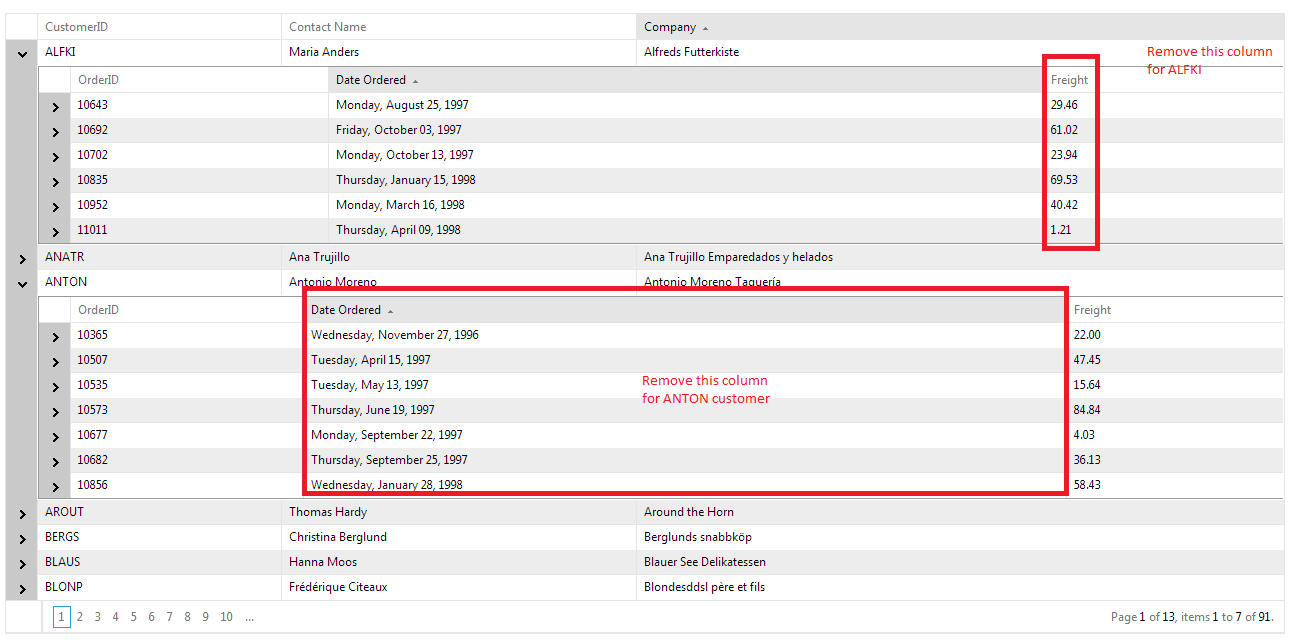 1. for each customer Id ending with I, I will have to hide Freight Column and if it ends with N, I will have to hide date ordered column.