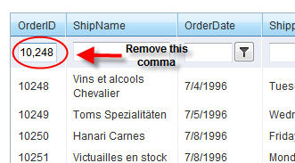 This might be an easy question but i can not find the answer. If you have a radgrid with a filter on a numeric value it shows that value in the filter box with a comma if it is over 999 (NOT in the data itself). I.E. you want to filter on OrderID and that is numeric. If you try to filter on OrderID and the value you are looking for is 12345 in the filter box it shows it as 12,345. is there a way that the filter box will not show comma's?