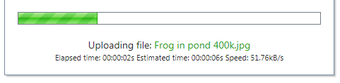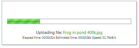div.RadUploadProgressArea_Office2010Silver .ruProgress { background-image: none; }The example applies to the control when you are using the Office2010Silver skin and depending on the skin that you are setting you will need to change the name of the selector.