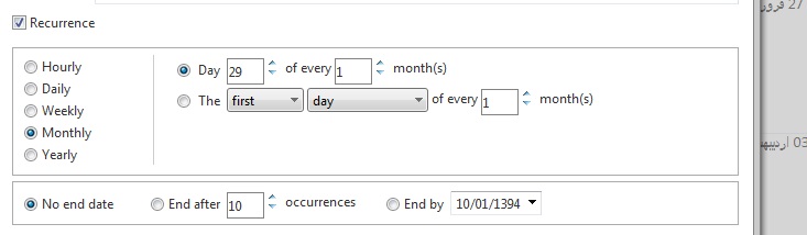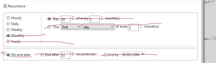 You can inspect the dome elements that you want to hide and use jQuery in the clientFormCreatedEvent to do this as it is described in the Hide the "hourly" option and the first two days for the "weekly" option in the recurrence panel section of this help topic.